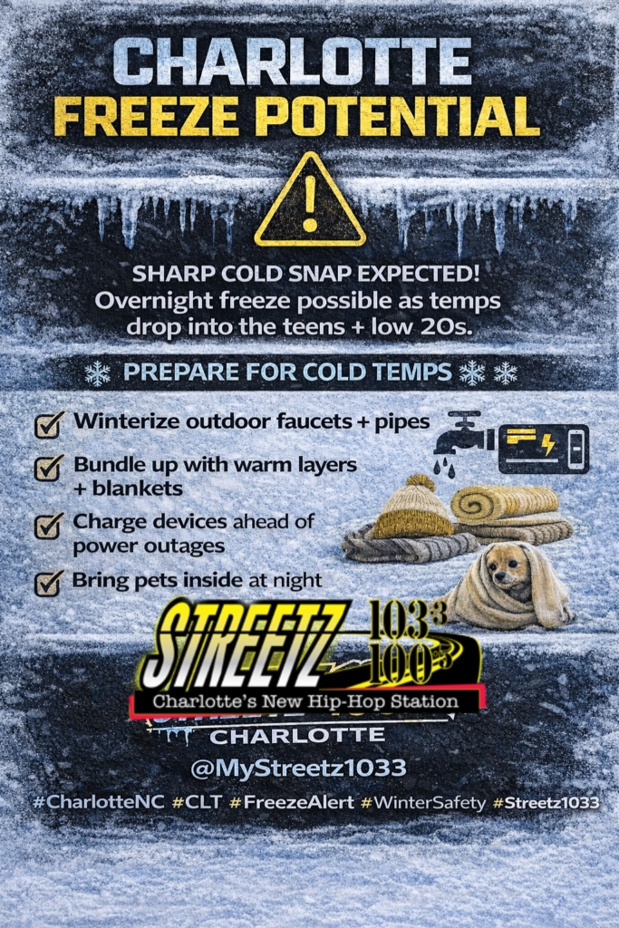 Charlotte — stay ready, stay warm, and stay safe. Keep it locked to Streetz 103.3 Charlotte for updates, community info, and everything happening in the city.