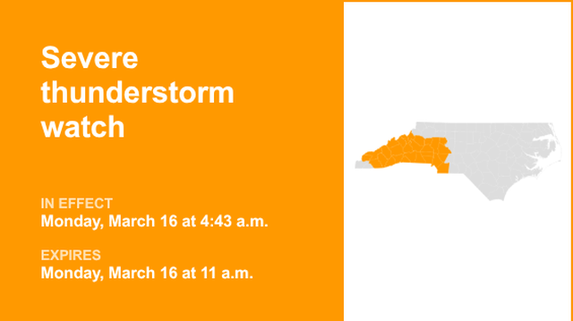 The severe weather has already caused disruptions across the region. Flights at Charlotte Douglas International Airportexperienced cancellations and delays as thunderstorms moved through the area, prompting a temporary ground stop earlier in the day.
